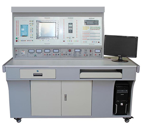 實訓裝置主要由控制屏、實訓桌、變頻器實訓組件、繼電接觸實訓組件、數字量/模擬量輸入輸出給定指示組件、三相異步電機、導線架等組成。