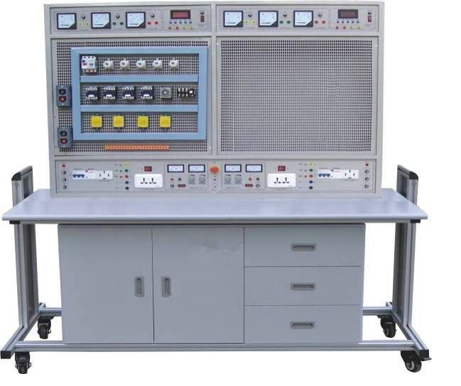 7、實訓桌:鐵質雙層亞光密紋噴塑結構,桌面為防火、防水、耐磨高密度板,并配有元器件儲存柜及抽屜。