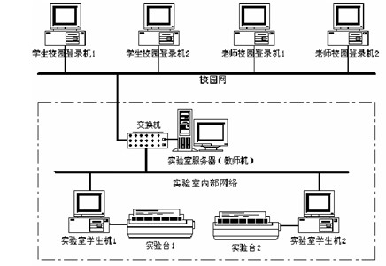 實驗室內部網采用星型結構,實驗室服務器由教師端計算機擔任,實驗數據采集由學生端計算機執行。