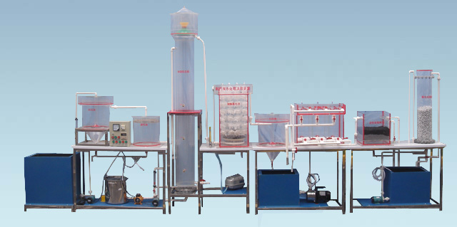 處理水量:5~10L/h、裝置外形尺寸:5300mm×500mm×1400mm、電源 220V 功率1300W配置:有機玻璃混凝攪拌池1套、沉淀池1套、厭氧水解池1套、接觸氧化池1套、豎流式中沉池1套、接觸氧化池1套、豎流式沉淀池1套、齒輪減速電動機1只、電機1只、30L聚丙烯藥箱1只、加藥計量泵1臺、LP-60低噪音氣泵2臺、水泵4臺、轉子流量計1只、排水槽2只、電控箱、漏電保護開關、按鈕開關、連接管道和球閥、帶移動輪子不銹鋼臺架等組成。