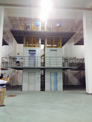 整個(gè)裝置采用真實(shí)的部件組成,導(dǎo)軌、轎廂、廳門、轎廂門、限速器、對(duì)重裝置等都采用真實(shí)的部件或配套的機(jī)構(gòu)。控制部分采用全數(shù)字化的微機(jī)控制系統(tǒng)(VVVF),曳引機(jī)采用目前最主流的永磁同步電動(dòng)機(jī)驅(qū)動(dòng),同時(shí)配套有相應(yīng)的故障點(diǎn)設(shè)置,學(xué)生可以通過(guò)故障現(xiàn)象在裝置上檢測(cè)查找故障點(diǎn)的位置,并將其修復(fù)。學(xué)生也可以根據(jù)電梯定期檢查的要求對(duì)電梯的相應(yīng)部位進(jìn)行檢測(cè)和修護(hù)。通過(guò)在該實(shí)訓(xùn)裝置上的實(shí)訓(xùn),使學(xué)生能夠真正學(xué)習(xí)和掌握電梯的維保技術(shù)及技能。特別設(shè)計(jì)的井架,為老師在實(shí)訓(xùn)中對(duì)學(xué)生的教學(xué)和指導(dǎo)提供了非常方便的平臺(tái)。
