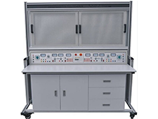 平臺框架應采用鋁合金型材,下部應安裝有滑輪。工作臺分上中下三部分布局安裝,上層用于安裝配電柜,中間安裝網孔板,下面可固定安裝1臺三相異步電動機。