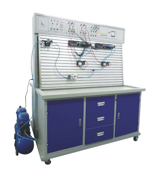 該實驗臺采用了采用1.2mm冷扎鋼板制作,并進行噴丸處理,外形結構美觀大方,堅固耐用,操作方便。基本配置為:氣動實驗元件1套;氣動實驗PLC電氣控制系統1套;氣動實驗繼電器控制模塊1套;低噪音空壓機1臺;液壓實驗元件1套,液壓實驗PLC電氣控制系統1套;液壓實驗繼電器控制模塊1套;液壓實驗泵站1臺。(計算機根據學校要求另行配置)