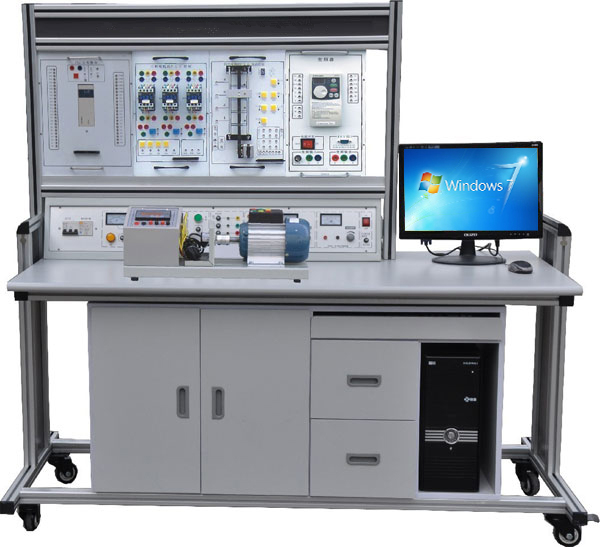 PLC部分可直觀地進行基本指令訓練,多個應用廣泛的PLC實際應用模擬控制訓練,同時也為了高層次的設計開發實驗實訓提供良好的條件:為了結合教學要求,設計過程參考國內多種教材,從中精選最具典型性的實訓項目,配備三相鼠籠異步電機及繼電器,能完成多個電氣控制項目訓練。變頻器選用應用廣泛的三菱FR-S520變頻器(用戶也可選用其它品牌的變頻器,價格另議),帶有R485通信接口,可完成變頻調速技術課程的相關教學實訓。
