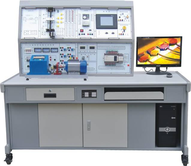 實訓裝置由控制屏、實訓桌、主機實訓組件、實訓模塊(含豐富的工業現場設備模擬實訓對象)、變頻器掛箱、觸摸屏掛箱、交直流電機、總線單元、通信模塊、電機導軌、測速機構等組成。