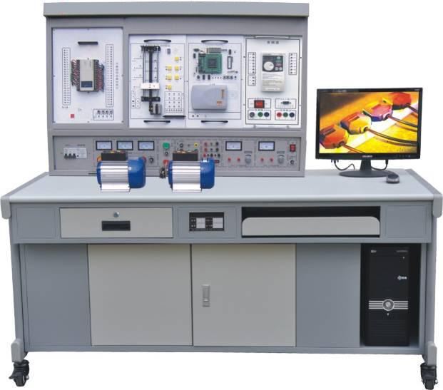 本裝置集變頻控制、PLC編程邏輯控制器、變頻器、觸摸屏通信編輯器、編程軟件、工控組態軟件、仿真教學軟件、模擬控制實訓掛箱、實物與于一體,綜合性強、功能齊全。