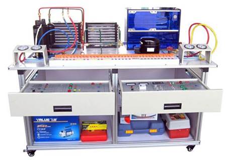 現(xiàn)代制冷與空調(diào)系統(tǒng)技能實(shí)訓(xùn)裝置是專門為職業(yè)院校制冷類專業(yè)而研制的制冷制熱實(shí)訓(xùn)設(shè)備,根據(jù)制冷制熱類行業(yè)中空調(diào)與冰箱維修技術(shù)的特點(diǎn),針對空調(diào)和冰箱的電氣控制以及制冷系統(tǒng)、電氣控制系統(tǒng)、系統(tǒng)調(diào)試、故障診斷等特點(diǎn)進(jìn)行設(shè)計。強(qiáng)化了學(xué)生對空調(diào)冰箱系統(tǒng)管路的安裝與維修系統(tǒng)調(diào)試等的等的綜合職業(yè)能力。本裝置由空調(diào)系統(tǒng)模塊,冰箱系統(tǒng)模塊,電源及儀表模塊,空調(diào)電氣控制模塊,冰箱電子溫控電氣控制模塊,冰箱智能溫控電氣控制模塊等組成。通過設(shè)備進(jìn)行項目訓(xùn)練,能提高學(xué)生的動手操作能力,計劃組織能力,制冷系統(tǒng)的調(diào)試安裝能力,電氣控制電路維修能力等是現(xiàn)代制冷制熱技能實(shí)訓(xùn)的必要工具。